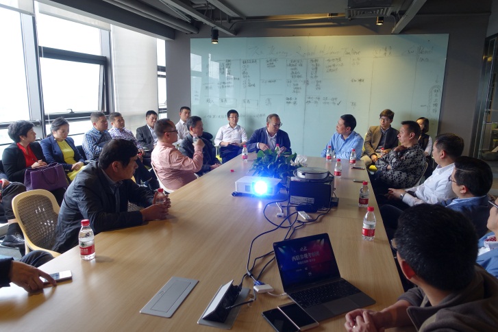 午后,考察学习团来到未来科技城•海创园,在盈动投资创始人、杭州盈开投资公司总裁项建标的陪同下,参观B座12楼及盈动资本,对其运营模式、办公场景进行细致了解。在随后的交流会中,B12的CEO苏杰介绍了盈动资本和B12的情况,项建标总裁为大家讲解新媒体营销及创业投资公司的运作,分享传统企业“互联网+”的策略、路径、方法等经验,并就“西联集团如何利用互联网思维完成转型”等问题提出了自己宝贵的意见和建议。